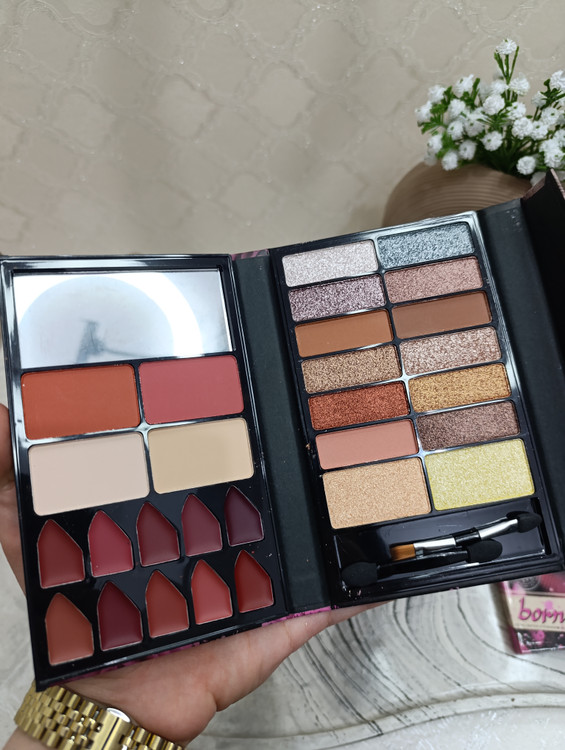 🔻مدل born shiny شامل : سایه چشم ، هایلایتر ، رژگونه ، پودر برنز کننده و رژ لب